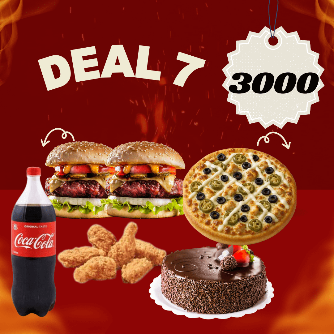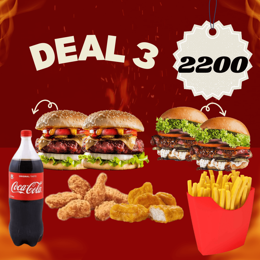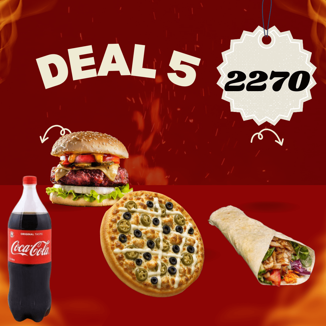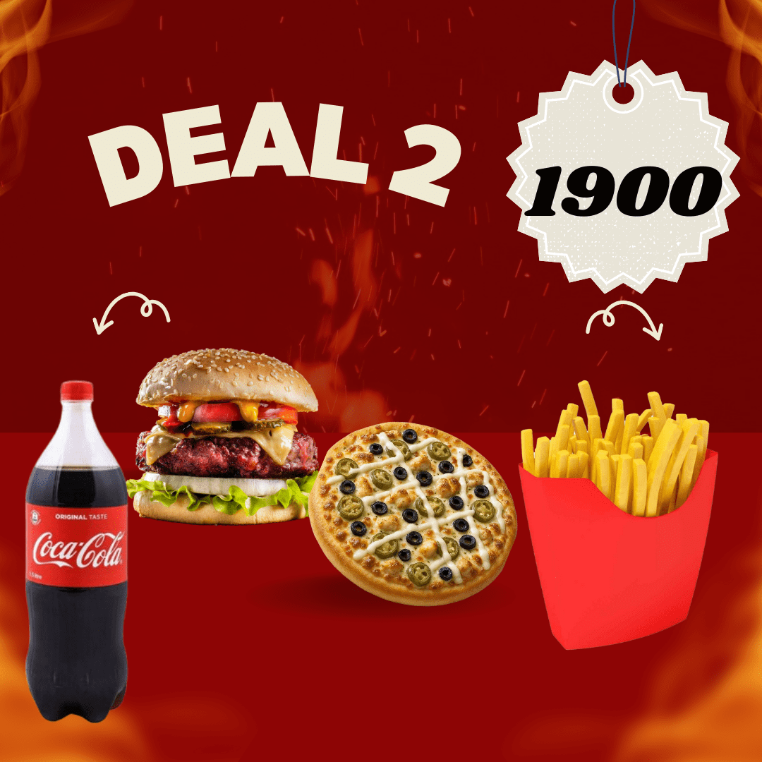 Deals. Special Deals Deal 1 Rs 660 1 Zinger Burger1 French Fries0.5 Ltr Cold Drink Order Now Deal 2 Rs 610 1 Chicken Cheese Burger1 French Fries1 Tin Pack Order Now Deal 3 Rs 690 1 Fish Burger — 1 Tin Pack Order Now Deal 4 Rs 670 Chicken Bites — 0.5 Ltr Cold Drink Order Now Deal 5 Rs 600 5 Pcs Nuggets1 French Fries1 Tin Pack Order Now Deal 6 Rs 390 1 Special Paratha — 1 Tin Pack Order Now Deal 7 Rs 1150 3 Pcs Chicken fried— 0.5 Ltr Cold Drink Order Now Deal 8 Rs 740 10 Hot Wings— 1 Tin Pack Order Now Family Deals 2 Zinger Burger 2 Shwarma French Fries — 1.5 Litter Cold Drink Order Now 1 Zinger Burger 1 Medium Pizza Tikka 1 French Fries — 1.5 Litter Cold Drink Order Now 2 Zinger Burger 2 chicken Burger 1 French Fries 4hotwings+4 Nuggets 1.5 Litter Cold Drink Order Now 2 Large Pizza (Tikka) — — 1 Cold Drink 2.25 Ltr Order Now 1 Zinger Burger 1 Large pizza (Tikka) 1 Shawarma 1.5 Litter Cold Drink Order Now 2 Medium Pizza 1 Small pizza — 2.25 Litter Cold Drink Order Now 1 Pound Cake 2 Zinger Burger 5 pcs wings 1 Medium Pizza(Tikka) 1.5 Litter Cold Drink Order Now — 6 Zinger Burger 1 French Fries (S) — 1.5 Litter Cold Drink Order Now — 2 Zinger Burger 1 XL Pizza — 1 Cold Drink 2.25 Lttr Order Now 1 XL Pizza 1 Medium Pizza 1 Cold Drink 2.25 Ltr Order Now Facebook Mail-bulk Tiktok Whatsapp 📍Canal Road,Block No 2,Jahurabad (Khushab)